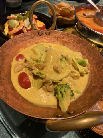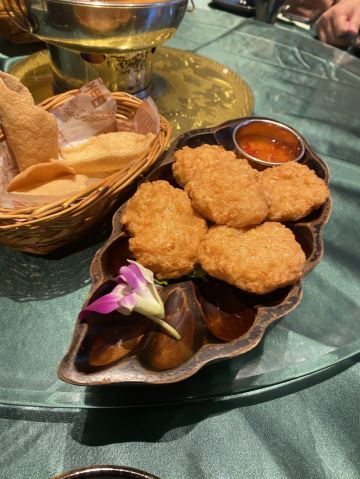 泰国菜非常不错,非常喜欢青柠檬蒸野游大黄鱼,鱼肉非常嫩,汤汁酸酸甜甜很开胃,当然冬阴功汤也是必点的,泰国香米也是非常香糯,拌着咖喱真是太好吃了。