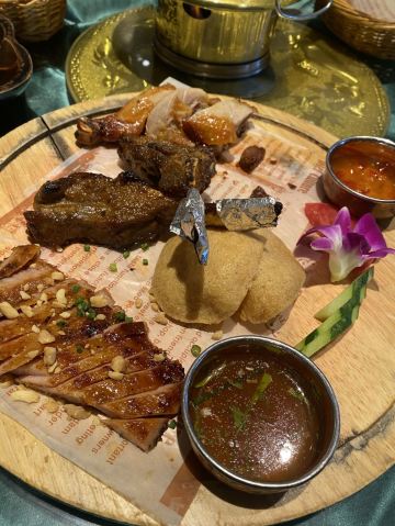 工作日的晚上,还蛮好找位子的,分室内室外部分,入秋晚来凉,还是选择了室内。四个人吃饭,团购的328的套餐性价比着实挺高,而且量也挺足的,蔬菜,水果,肉类,海鲜,汤,饮品,甜品都涵盖了。发现这家店各大银行活动都有参与,划算。