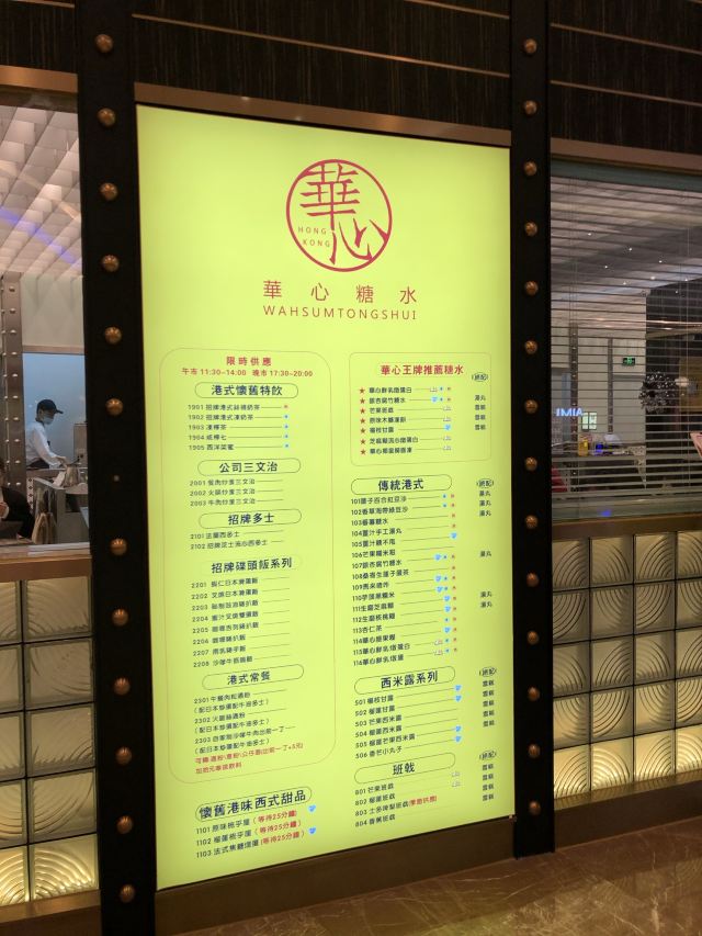 原味木糠凍餅,華心鮮乳燉蛋白,深井烧鹅皇,鲍汁凤爪,冰火烧肉,流沙包,芒果西米露,銀杏腐竹糖水,芝麻糊配紅豆沙,榴莲酥,芒果蛋白捞珠,杨枝甘露,法式焦糖燉蛋,金钱鲜虾蟹盒,榴莲梳乎厘,金银蒜蒸大皇蛏,士多啤梨西米露,鲜虾脆皮肠粉,芝麻糊配核桃糊,素鲍鱼,港式怀旧红豆冰,豉汁凤爪,榴莲甘露,蜜汁叉烧酥,薑汁糖不甩,花雕蟹油蛋蒸波龙,龙虾汤泡饭,龙凤虾饺皇,吊烧脆皮芝麻鸡,蜜汁叉烧,招牌甜薄撑,龙凤楼辣蟹,乳鸽,啫啫唐生菜,明炉深井烧鹅皇,金沙鲜虾肠粉,原味梳乎厘,生磨芝麻糊,榴莲芒果西米露,榴莲班戟,芒果班戟,原味木糠冻饼,朱古力冻饼,华心鲜乳炖蛋白,银杏腐竹糖水