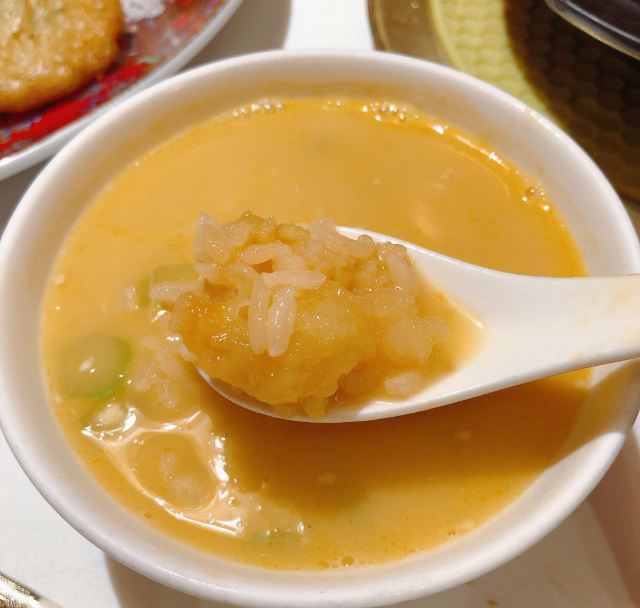 青青岛-店铺在入住酒店旁边的商超里面,加上天不好就近解决!过年吃点好的,选了这家人气比较高的餐饮,是不是香港的不知道,排队倒是真的!等候有40来分钟,10来桌的样子,点的海鲜等桌期间提前下单,这样后厨能处理的快一些。入座后点餐很快,上餐速度也不错,海鲜中间环节上来了,最后快走了才上的龙虾泡饭。感觉这道菜应该是可以提前预制的,泡饭汤肯定不能现熬对吧,米是脆脆的感觉,也是炸一下就行,招牌菜应该出量很大。菜品来说是很不错的,典型粤菜风格,没有因为忙而降低了标准。唯一缺点就是服务真的很一般,骨碟都满了不要求也没给更换的,几个年轻的女服务好像只管上菜,追加菜品和有要求的只有领班来操作!