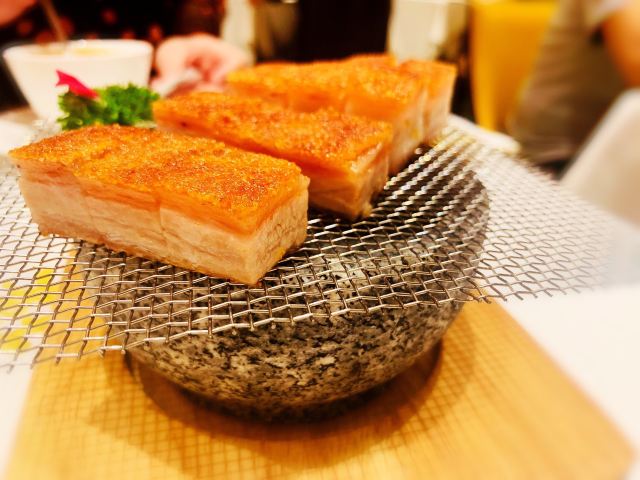 XY_Shirley香港龙凤楼(陆家嘴中心店) 浦东南路899号上海陆家嘴中心9F 地铁二号线东昌路站3号口、地铁九号线商城路站2号口地下相通 种草很久的香港龙凤楼 因为巨鹿路上停车难 所以一直未能成行 和同样钟情粤菜的闺蜜 终于在陆家嘴中心约起来了 工作日的中午位置很少 传统的粤菜馆风格中规中矩 传说中的「冰火烧肉」 金黄香脆的外皮看着好诱人 入口皮脆肉嫩 入口即化 完全不肥腻 「鲍汁凤爪」 鲍汁很粘稠 凤爪软糯酥烂 鲜美入味 「竹蛏王」 闺蜜贪心地想要点四个 事实证明真的还不错 竹蛏肉质很饱满 Q弹入味非常有嚼劲 吃到最后还有鲜甜的味道 「鲜虾脆皮肠粉」 她家的肠粉也是一大亮点 肠粉外皮软糯不粘 包裹的脆皮松脆可口 内里虾仁个大弹牙 多重口感非常丰富 其他菜就略显一般 可能期待过高 虽然亮点颇多 真正品尝到的时候 还是有一丝感觉没达到心理的期望值