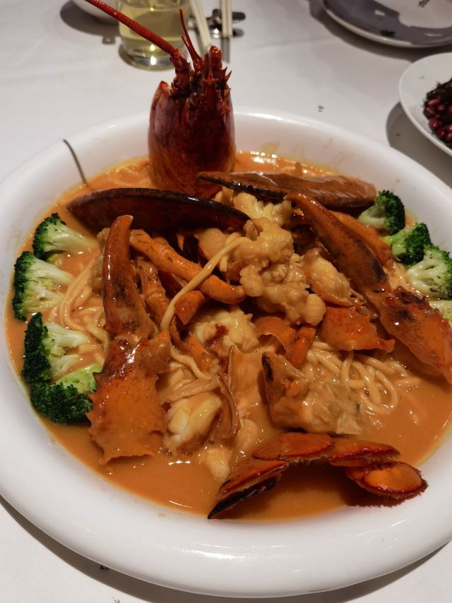 店铺在入住酒店旁边的商超里面,加上天不好就近解决!过年吃点好的,选了这家人气比较高的餐饮,是不是香港的不知道,排队倒是真的!等候有40来分钟,10来桌的样子,点的海鲜等桌期间提前下单,这样后厨能处理的快一些。入座后点餐很快,上餐速度也不错,海鲜中间环节上来了,最后快走了才上的龙虾泡饭。感觉这道菜应该是可以提前预制的,泡饭汤肯定不能现熬对吧,米是脆脆的感觉,也是炸一下就行,招牌菜应该出量很大。菜品来说是很不错的,典型粤菜风格,没有因为忙而降低了标准。唯一缺点就是服务真的很一般,骨碟都满了不要求也没给更换的,几个年轻的女服务好像只管上菜,追加菜品和有要求的只有领班来操作!