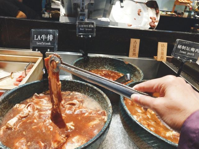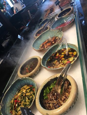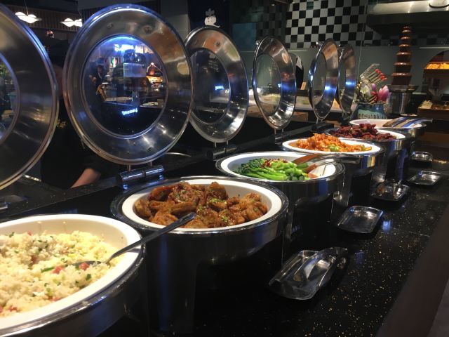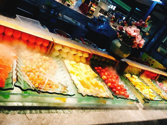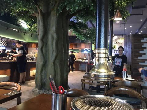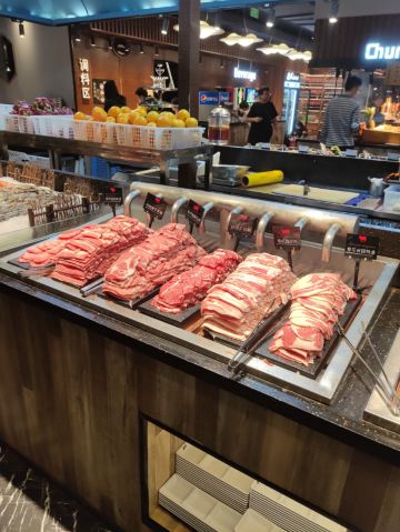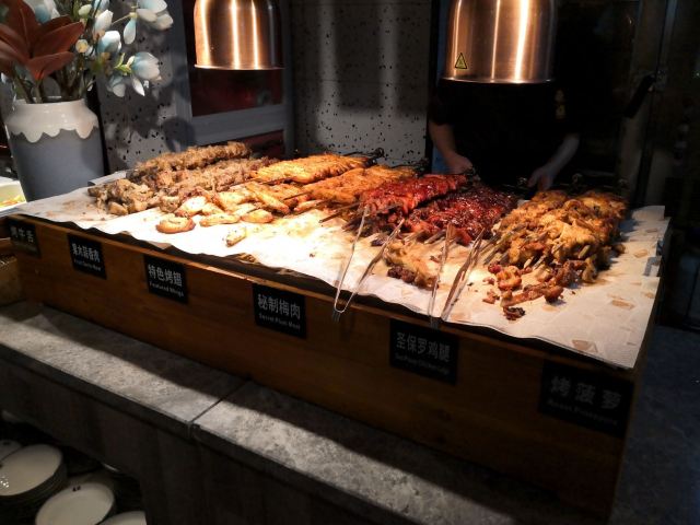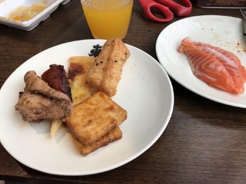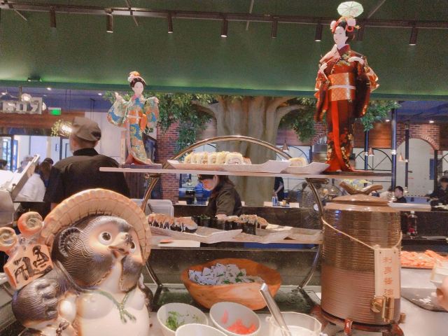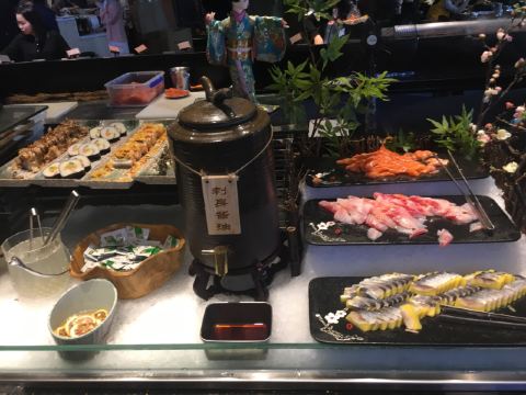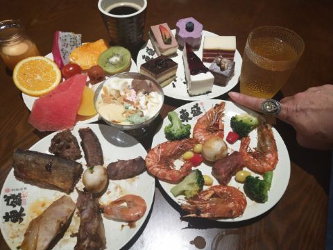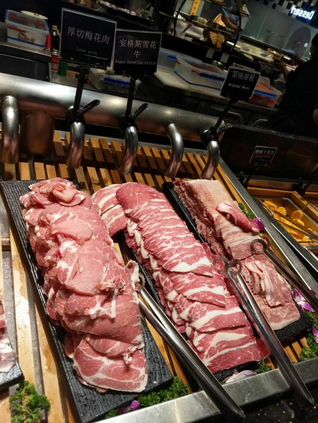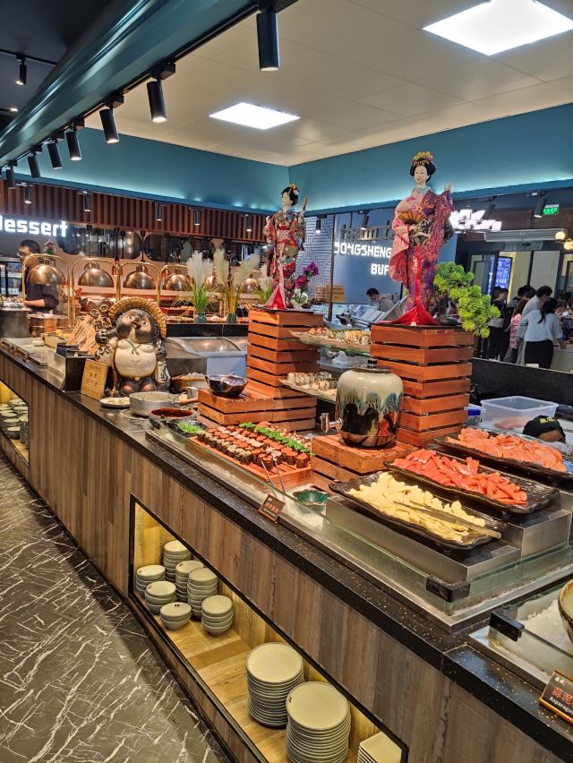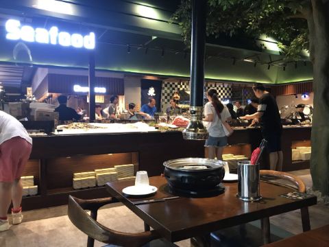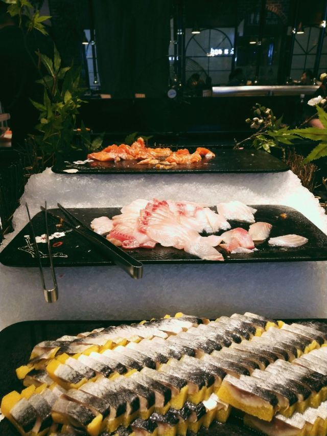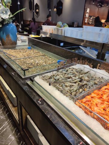 Andre Li终于和同事来拔草这家自助餐了,之前太火爆,听说排队2、3小时去吃的都有,我们也来过几次,拿了号都没等上,中午的休息时间比较短,所以这次提前在美味不用等上取了号,到店时间刚刚好,而且工作日午市价格上真的很划算的,到店后看到已经有一大波人在取食物了,都没来得及拍上几张照,区域分的很多,有烤肉,有日料,有牛排,有甜品,中餐,西餐都有,里面空间还挺大的,最后面一排还有很多座位,那里都是中式美食,我们几乎都没去拿,烤肉的话,我们都觉得牛肉看上去不错,吃进嘴里不太好咬,肉质很柴很多筋筋拉拉的,所以后来就吃了很多虾,生鱼片只有三文鱼和鲷鱼,至少我就看到这两种,水果种类挺多的,口感却一般,然后甜品的话去的时候没多少种类了,味道只能说还能入口,因为毕竟这个价位,只能说还可以了。总体来说在附近工作的上班族中午来撸一顿还是可以的。
