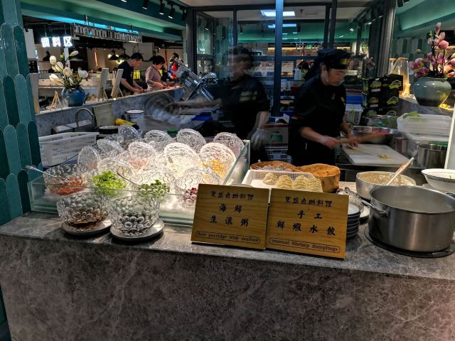 東盛碳烤自助料理 菜品多样价格实惠 烤肉特色排队等位 人鼎兴旺服务还行 東盛碳烤自助料理在张江·金科路2901号,长泰广场2楼。交通真的不便,晚上好多公交很早就结束了,排队等位到很晚,看着时间吃饭赶公交。 朋友相约,有幸走走看看长泰广场,环境很好。电话预约,排队等待叫号。 入店,坐位有吧台卡坐方桌,菜品特色烤肉碳烤。饮品啤酒咖啡黄酒,点心蛋糕冰琪淋。 价格真的很实惠,排队等位就明了。 吃饱吃好真心赞,自助选择喜欢吃。 海鲜刺生有点少,一分价格一分货。 物超所值真不少,再多也是吃不了。 啤酒咖啡烤肉轮流吃,吃到有点撑。再看看,再走走。 最后看到東盛的店员吃的晚饭,真的是太太太一般了。最后一张照片。 天天看着美味,自已简单菜品。 虽然吃自助餐,珍惜食物莫浪费。