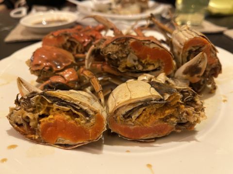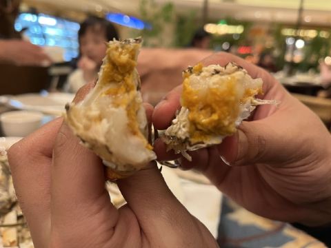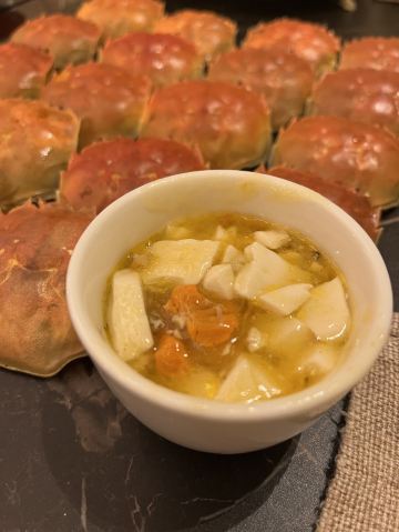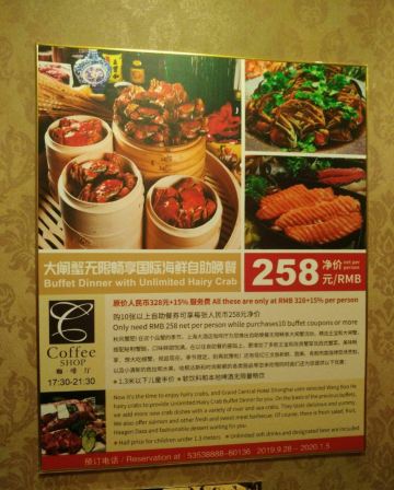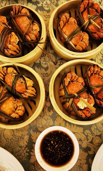 Shanghai Hotel Buffets每年10月到1月王宝和的大闸蟹都是非常的吃香,这次终于拔草了王宝和大闸蟹自助餐,提前了一个多月预订,已经没有周末场了,约了周五晚上的这场。提前在公众号买了券,小朋友高于1米,现场另收188。 [薄荷]环境: 5点30开始进场,餐厅就在酒店的1楼高挑的大堂。按照预订信息提前入座,吃饭过程中会来验证团购券。 「大闸蟹」雌的可以一次拿2只,雄的一次只能拿一只。1月的大闸蟹不论是黄还是膏都非常的饱满。吃到后面还是雄的好吃😋,满口的蟹膏🦀️。 「醉蟹」用的都是雌蟹,每只都非常的壮,绍兴黄酒非常入味,分量充足,满口的咸鲜味。 「小馄饨」「小笼包」小笼包是6点以后现蒸的,每笼2个,热的非常好吃,里面的蟹粉可以看得到。小馄饨每碗6,7个,浅尝一下不错。 「哈根达斯」6种口味,量力而行,比较喜欢奥利奥口味的。 姜茶特别赞,绝对是吃蟹的利器。小朋友这次给力,吃了好多蟹膏和蟹腿,我帮她剪腿,她自己拿工具挑。 家里两位老人不舍得来,我觉得蛮好的,比吃300一碗蟹粉面要值,明年再来。