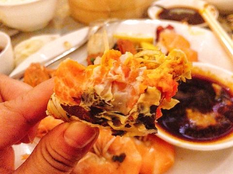 青争静静是不是对冰镇小龙虾有误解啊?不是所有的小龙虾都适合冰镇的好嚒!一定要!至少要新鲜!!!打开腮就能看到肉是软趴趴松散的,类似甚至不如这只的冰镇有好些个。这一点隔壁王宝和家把关比较到位,当晚吃了那么多只,没看到一只是类似的。其实也知道两家的进货渠道一样,但选择冰镇的小龙虾还是请记得筛选一下。 除了冰镇还有熟醉、剁椒蒜蓉、红烧、十三香的,自助种类比王宝和多了三文鱼、蟹脚等海鲜,哈根达斯也比较容易挖出来。 一直想吐槽这个自助餐厅,在大堂的咖啡厅座位,光线昏暗,拍出来的食物颜色不用滤镜看起来让人没食欲,用滤镜就有点失真,这次冰镇小龙虾吃得不尽兴,照片就将就看看吧,这个月还是换隔壁家。