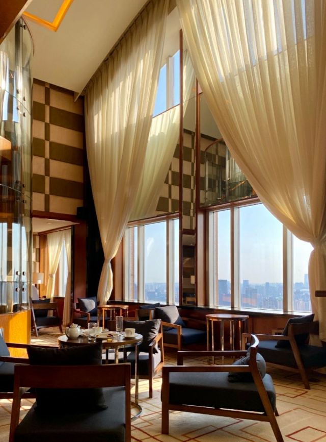 Beta W入住上海红塔豪华精选酒店的套房,可以享用行政酒廊服务,下午五点半开始有happy hour,平时时间段有饼干软饮水之类的。服务非常好,很亲切来逗我家娃。可以看到浦东三件套,景色也不错。