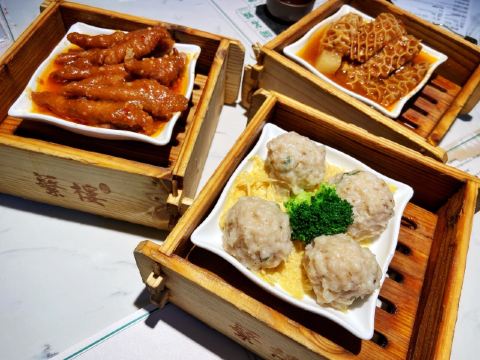 xo酱山椒蒸凤爪,绵香沙爹金钱肚,香脆明虾红米肠,蘩楼露笋虾饺皇,金牌脆烤乳鸽,广州荔湾艇仔粥,绵香沙嗲金钱肚,顺德大良双皮奶,金枕飘香榴莲酥,豉汁蒸新鲜排骨,东北五谷软杂粮