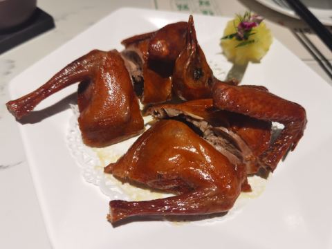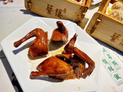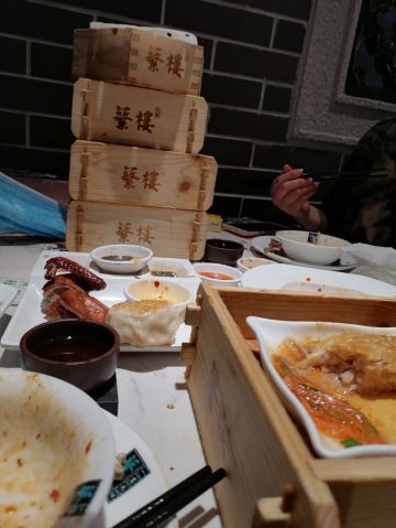 Helen晓世界《晓世界》国内环游篇📍上海 朋友说路过好几次都被排长队劝退了,但这次我回来想带我尝尝,就挑了个工作日,十一点半前就网上取了位置,不过没想到还是排了快一个小时[惊讶]还好味道确实挺不错的,稍微抚慰一下等待的焦躁吧,对我个人而言,属于排队半小时内可以接受的那种。 |金牌脆烤乳鸽^不愧是招牌之一,鸽子烤的很嫩,而且主要是够入味,靠近骨头的肉也不需要蘸料。 |xo酱炒萝卜糕^和|蘩楼露笋虾饺皇^也属于必点,而大家比较推荐的|香脆明虾红米肠^对我来说有点油腻了,趁热吃一块还不错,再多就不能忽略里面一层酥饼析出的油味了。 服务还可以,茶水倒的比较勤,就是环境略有点拥挤,有些空调下的位置太冷了。