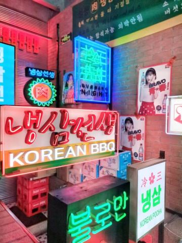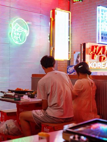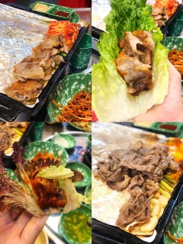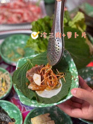 雪黎不是雪梨老店因为人气太旺 店员带到了新店 穿过热闹的首尔夜市 100多米就到达了 新店有两层 店面很大 布置的也很怀旧 感觉身处首尔一样 「冷三肉」这个数招牌必点的 锡纸烤的更好的锁住了水份 肥瘦相间 搭配蒜苔 生菜🥬和酱料 很解腻 味道也很好 「辣拌酱蟹」和本帮醉蟹一样是生吃的 不过这个蟹是酱拌的 蟹🦀️个头很大 蟹肉新鲜 也很下饭 「芝士玉米」芝士🧀️给的一点也不吝啬 可以拉好长 奶香味很重[调皮] 小姑娘完全抵抗不了 「海鲜葱饼」很脆 葱香味重 要趁热吃非常爽脆