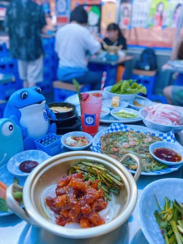 雪黎不是雪梨韩国欧巴调的真露鸡尾酒好“甜”呀[爱心] 夏天的首尔夜市与排档简直绝配 一进门听到的都是韩文 放佛穿越到了韩剧里的场景 烧酒+烤肉+拍档 太有感觉了 就像在韩国一样 酷似“鹿晗” 的韩国欧巴调制的真露鸡尾酒颜值和口味都绝佳 还有烧酒做的金汤力和长岛冰茶 第一次喝到真不错 「冷三肉」作为冷三的招牌五花肉 是必点的烤肉 韩国老板亲自为我们烤肉简直幸福感爆棚哦 肥瘦相间的五花肉 和泡菜 蒜片包裹着生菜🥬一起吃非常解腻 「辣海鲜锅」海鲜锅里的虾🦐比我巴掌还要大 品种超级多 小鲍鱼 蟹🦀️ 虾🦐 青口贝 蛤蜊 花枝等 好丰富 一口一个海鲜 塞的嘴巴扑扑满 「辣椒炒年糕」蟾蜍炒年糕非常有特色 芝士热狗棒蘸着泡菜酱一起吃超级爽口 「海鲜糖醋肉」以炸物为主 满满的海鲜味颠覆了我对糖醋肉的认知 「火鸡炒饭」炒鸡劲爆的炒饭 吃完还可以喝三轮鸡尾酒 不能去韩国的日子 这家店真是不错的选择 [调皮]