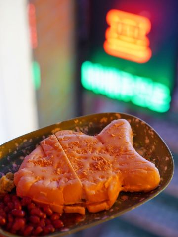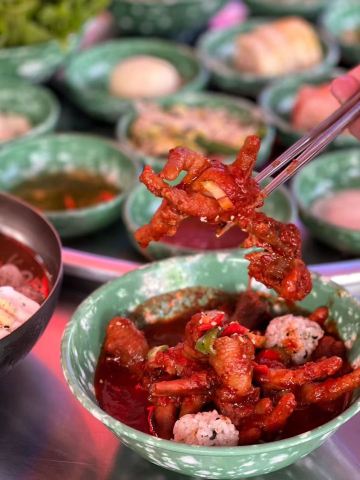雪黎不是雪梨现在不用去韩国 在魔都也可以接受糖饼抠图挑战 老板给了个五角星⭐️的图案 看上去很简单 自己上手真的是难 第一次直接扣挑战失败 第二次用舌头👅舔 颜看差一点就要成功了 结果掉地上 还是失败 尽管没有挑战成功 但是韩国小哥还是亲自调了杯「炸弹酒」以表安慰 我觉得我还是适合专心干饭 鸡肉做的「复古糖醋肉」很少见 酸酸甜甜很酥嫩 酱汁酸甜可口 「辣味冷三肉」酱汁浓郁 甜辣口味 用独特的紫苏叶包着五花肉 生大蒜和韭菜 一口下去 层次丰富 完全不油腻 韩式脱骨「辣鸡爪」软糯酥嫩 啃起来很方便 「辣烤豬皮」炒猪皮韧性十足 口感Q弹 毫无肥腻感 还有千万不要错过这里的真露鸡尾酒 非常好喝 很有特色 一定要试下 想来挑战糖饼抠图的赶紧冲,挑战成功有惊喜!😄