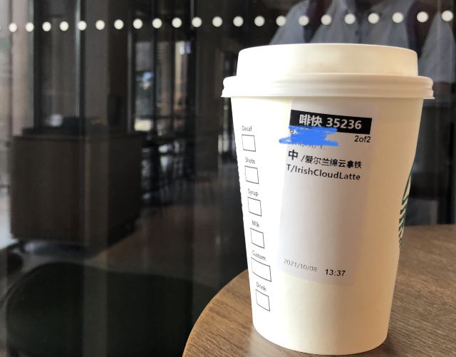 来广富林遗址公园玩,到了知也禅寺这里,其南的海浦商业区里的星爸爸已经开张了,便进去打打卡。 【环境】楼上、楼下两层。楼上大露台风景赞,正对着知也禅寺。 【服务】用了星爸爸的服务,先在手机下单,到店已好拿了。 【口味】尝试了新品“爱尔兰绵云拿铁”,味道很醇厚。