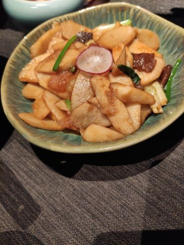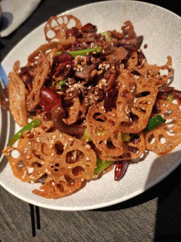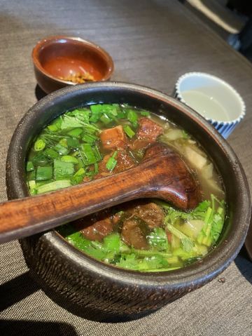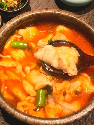 横竖是二温小迪这餐厅太热门了,赶中午11点到的,没想到没轮到第一批用餐,好在也不太饿,在楼下喝了一杯茶,就被服务员通知到号了。 凯里酸汤鱼 有点冬阴功汤的感觉,不沾调料也好吃,用服务员指导的方法吃口感更丰富些。 花溪牛肉粉 这个推荐,里面的牛肉很好吃,粉也不错。 水豆豉炒蓬蒿菜 一直觉得蓬蒿菜有股药气,不爱吃。但是他家的木有药气,炒得也嫩,味道也好。 爆珠豆腐花花 豆浆味道的。 爽爽烧椒鸡 这个是重口味的,咸辣味的,我觉得味道很好,有很香的葱油味,鸡也很嫩,就是越吃越咸。口味清淡的不推荐,口味重的配个米饭,不要太好吃! 今天端午节还送了主食,里面有梅干菜和土豆丝,也挺不错。 总体来说,是家性价比杠杠的餐厅。菜品不错,适合重口味的,服务也好,还了送些小吃,很贴心。