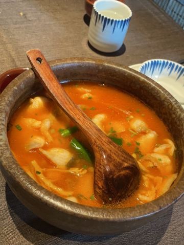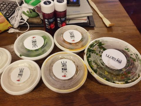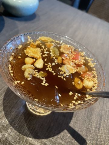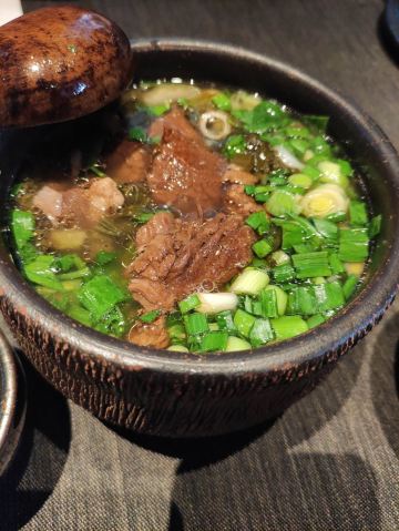 国庆,总要出门吃个饭~本想订座,只能到店扫码排队,20中桌大约1小时,店员小姐姐预估得很准!因为是扫码排队,到号如果人不在场,小姐姐还会电话确认,服务很是贴心! 等位还有金银花茶和贵州特色洋芋片提供。洋芋片如果喜欢,可以打包带走,免费哟! 买了双人套餐,过节可用! 凯里酸汤鱼,比较酸,小小辣,配的蘸料很好吃!鱼是江团,还有很嫩的笋,菇和豆芽。量很足! 花溪牛肉粉,不辣,可以自己加辣椒面。牛肉比较好,是红烧的,肉质酥烂入味。比起正宗的花溪牛肉粉略有改良,汤没那么鲜,但总体还不错!小姐姐会主动帮忙分成小碗。 水豆豉炒蓬蒿菜,蓬蒿有点太老了诶,水豆豉放得挺多,口味不错! 糟辣小炒肉,很好吃!小炒肉是厚肉片,不是五花肉,入味,好像还有一种菇,脆脆的,很喜欢!强推! 腌制白萝卜,大概秘制的,口味不错! 红豆爆珠甜豆花,套餐里有3份,超级好吃诶!必点! 红茶冰粉,单独加的,冰粉是用红茶做的,配合着柠檬茶的汤底,不错。不过总觉得豆花更美味! 黔西黄粑,也是单独加的,软糯好吃!