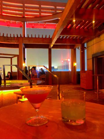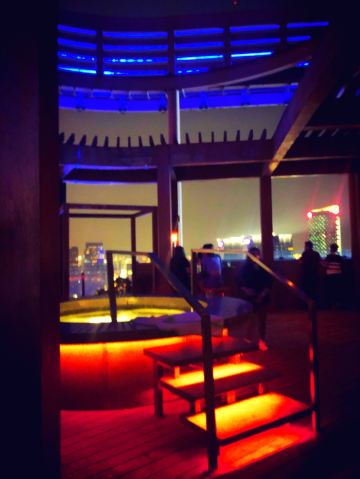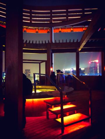 这家酒吧的环境非常时髦,露台设计独特,中央还有个泡脚池,边喝酒边享受夜景,真是惬意!