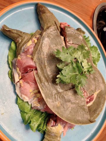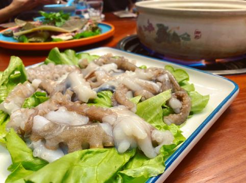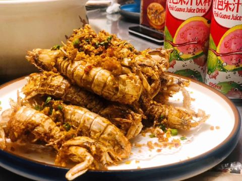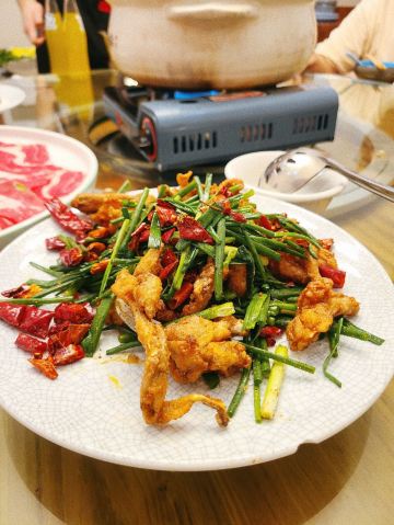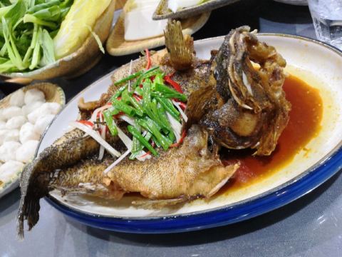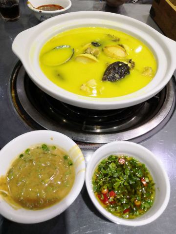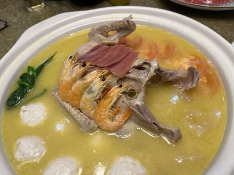漫漫的鱼仔上班的时候在主页刷到这家,看环境真心一般,但是考虑它是开了十几年的老店,居然评分这么高,一定有道理,于是过来探下究竟~ 帝王蟹一只,才497.5元!比我在济州岛吃的还要划算,可能是因为比较小,4个人一只足够~6人也够,再吃点别的也正好~关键是肉都是鲜甜的~~应该是活的![馋][馋][馋] 椒盐牛蛙刚上来觉得有点红,就问了下,原来是放了腐乳的缘故,怪不得味道有一丝丝甜~符合上海口味~ 鲍鱼不小,半个手指大小,都活的,逗逗它们,他们就吸在一起了。 烤响锣也挺赞的,用茅台酒浇在了海螺上,大火窜得好高[色] 雪花牛肉的肉片花纹好看捏~煮熟之后,纯瘦了~ 如果来这里准备吃海鲜,那就选清汤锅底38元比较实惠;如果喜欢喝汤,可以选择花胶锅底哦~
