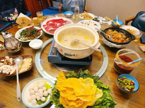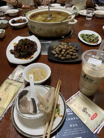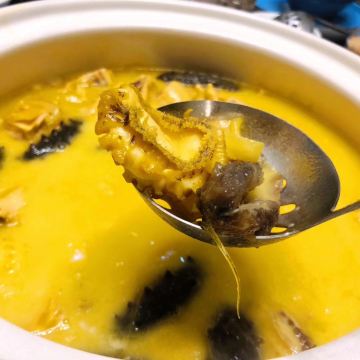 Swinng🐲隐藏于武进路的网红打边炉,热火朝天的排队靠的就是实力。接地气的环境,红瓷上金龙磅礴,正是他们家名字的由来。 🥘「金龙佛跳墙锅」大锅绝对豪气,聚餐派头十足,鲍参翅肚佛跳墙的锅底,正宗的打边炉的土砂锅炖煮,香气四溢。 🌟金汤每一口都是精华,捞起来全是猛料,胶质满满都花胶,个大精选的六头鲍,还有清远鸡、辽参等一同熬煮,胶原蛋白全靠它了。 🐚「茅台炭烧响螺」食神蔡澜推荐的不可错过。以锡纸包裹的香螺在木炭红泥炉上吱吱作响,淋上茅台,火焰燃烧,螺壳微焦散发迷人香气,螺肉香脆,淡淡的茅台与碳香的回味。 🥂新鲜现捞的老虎斑与各式海鲜都被赞不绝口,涮在锅中又鲜又嫩。与闺蜜们围坐在炉边,一般饕餮美食,一边畅聊甚欢。