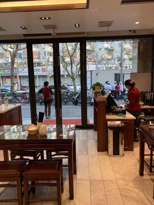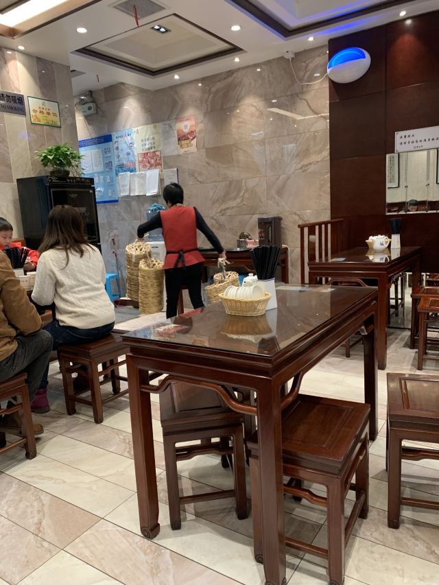 雨丝风片今天撞大运了。大老远跑去吃无锡小笼,下午三点半竟然已经卖完了。老板娘说等半小时会有。小笼还堵在路上。顺丰冷链的车子今天晚到了。店里已经没有原材料了,只有馄饨。我是三点三刻左右下单的。等到四点半左右,顺丰终于来了。见图一,门外那群人围着货车正在卸货。图二三,店员们正在搬货。五点,终于吃完现包现蒸热气腾腾的小笼和小馄饨走人。老板娘很会做生意。在等小笼期间,她让服务员给每位客人都送枣子茶。我觉得她家的枣子茶味道很好喝。等小笼期间还发生了件有意思的事情。不识字的文盲到店里来应聘,老板娘给她每个月三四千块,做扫地阿姨,她还不愿意。这年头劳动力成本上升,连文盲都这么值钱了!还是人民币太不值钱了呢?