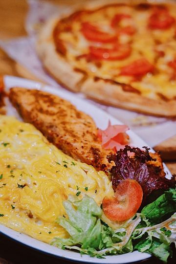 有时候,我们吃的不是饭,而是一份回忆,情怀两字比任何美食都打动人心❤️ 🏡玛格萝妮比萨屋🏡难以置信这是一家开了20年的老牌西餐厅,街坊邻居隔三差五就来捧场,绿植环绕的花园小洋房,带来家庭式小餐馆的温馨🪴 听到邻桌老主顾跟店主谈笑风生,想当年都是精神小伙儿,如今已年过半百头发花白👴🏼岁月是你想留也留不住的,不过幸好,熟悉的口味还是始终如一。 🍄黑松露菌菇披萨🍕吃起来竟然比肉还香,是怎么肥事⁉️趁热拉起一片,哇塞~这芝士瀑布也太绝了吧‼️ 🥔明太子烤土豆🥔据说是玛格萝妮的超人气断货王,今天居然安排上了✅细腻土豆泥入口即化,明太子调味锦上添花🔝 🍣香煎三文鱼配元气欧姆蛋饭🥘欧姆蛋嫩滑指数爆表,鲜美三文鱼则是100%的下饭神器,一碗下肚瞬间元气满满🤰 除了好评如潮的肉桂苹果茶,奶茶精最爱的黑钻牛乳茶,意外发现咖啡竟然也只有成本价而已❣️ 老板有自己的初心和坚持,希望大家都可以来点一杯亲手挑选的阿拉比卡咖啡豆,请你们都满足他好嘛🌝