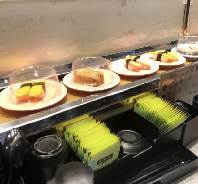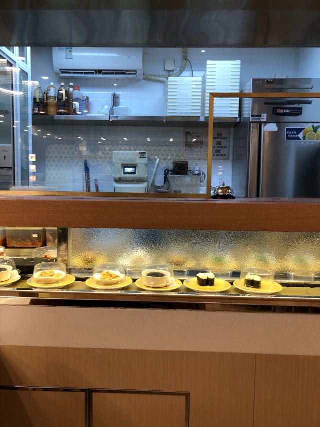 争鲜回转寿司(宝山店)是一家日料寿司店,一条长长的小运输带,沿着店里的所有座位兜一圈,各种寿司,点心都摆放在上面,食客根据需要去取,很方便。