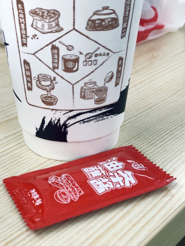 Yonghedaiwang (xujing)「黑芝麻大师豆浆」 新出的黑芝麻豆浆送到了 里面的黑芝麻粉有点沉底 黑黑的 芝麻味道挺浓 口感有点一般 甜的 「早餐非矾油条」 油条不大 但是很实在 配上油条酱 绝配 「早餐蛋饼油条」 好久没吃这个了 感觉个头好像小了?味道到是基本没变 饼+油条+酱 好吃的 一根油条可能不够吃 加上蛋饼妥妥的