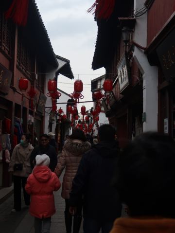 红色的人七宝老街还是挺有水乡古镇味道的,虽然稍小一点。老街上美食很多,比如刀鱼馄饨、臭豆腐、汤圆,汤圆店有好几家,可能离老街口最近的正宗,因为人最多。大家去逛的时候可以去尝尝。