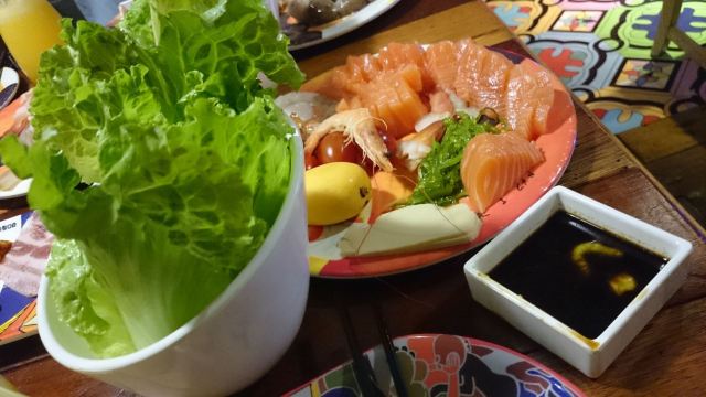 蒜蓉粉丝蒸扇贝,寿喜锅,三文鱼,奶香牛肉,肥牛,烤牛舌,土豆色拉,芥末章鱼,梅子酒,澳洲牛上脑,螺肉,烤虾,巴西牛舌,烤鳗鱼,上中华海草,甜虾刺身,牛百叶,麻辣锅,魔芋丝,土豆泥,上脑