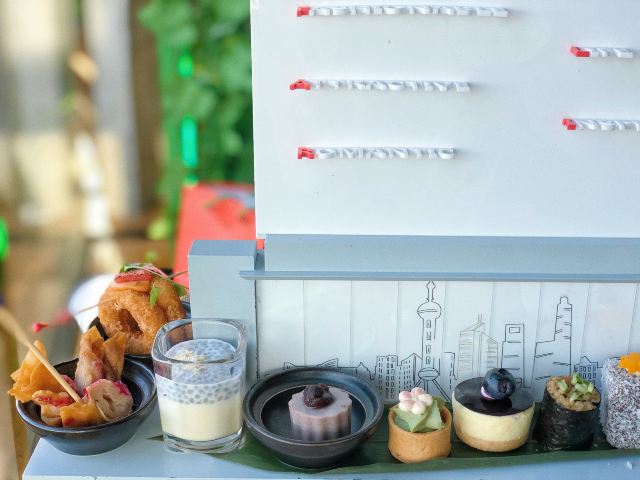 加油干饭呀众所周知,Flair拥有全上海距离东方明珠最近的露台,在这美好春日,不如我们一起体验明珠塔前的云翳小食盛宴。 我们不仅有主厨精心准备的各国风情美食,还有芒果巧克力拉明顿蛋糕、抹茶奶油挞等定制茶点,口感细腻,风味十足 FLAIR顶层餐厅酒吧的云端下午茶,是属于魔都下午茶的高度,58楼180度俯视魔都的江景 云端下午茶五道甜品四道咸点,汇集亚洲各国风味,并加入夏日鲜果元素,清爽的口感令人回味无穷 香脆可口的新加坡炸云吞搭配加入火龙果的莎莎酱,酸甜微辣;火炙鱿鱼圈配香辣蛋黄酱,顶上以小块西瓜点缀,水果的香甜起到中和的作用,多重滋味互相平衡, 再看甜点,椰奶布雷配奇亚籽,椰香四溢,夏日风味十足;日本红豆布丁和抹茶奶油挞口感细腻,表面还有一朵唯美的樱花🌸 九款各具风味的茶点在以陆家嘴天际线为背景的纯色定制款下午茶架子上熠熠生辉,与此时美景融为一体。
