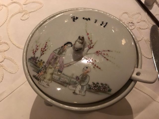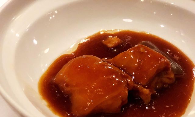 蛋花食游记今年唯一一次订的餐厅周,是小伙伴订上的,很早之前就在一档美食猜价格的节目上听闻这家前身是英领馆的雍福会,如今戴上了米二的光环的餐厅周更是引得人簇拥而至,550的价格不便宜,但是相信餐厅的品质,也没有仔细研究菜品,就满是期待而去了。结果非常败兴而归。 所有的菜品上有这道获奖的「普洱茶红烧肉」,但是口味太普通,并且其他菜品也是有失水准,他家也有380元餐厅周的午餐,菜单也比这晚餐好很多。晚餐贵在哪里呢?应该是平日里不太有人点的海参鲍片吧,讲真这种本身就是注重食材的东西没必要来这里吃。说说摆盘,前菜四味开始就让人失望,什么芥末生菜色拉也上桌了,那个菇还是可以的,带点辣味,糟带鱼,我的天,我花550到你你这里就是我妈在家里也能糟给我吃的带鱼?普通到极致,还有水晶肴肉也很普通。 第二道菜糟簸斗,这道菜我不好评价,说是老上海的做法,热菜做法的糟味,因为我不吃内脏觉得有点重,但是同伴觉得好吃,猪肺尝了一块,是嫩的,处理得也很干净。其他欣赏不来。 然后就是那道普洱红烧肉了,用的黑毛猪肉,我不爱吃肥肉,所以太肥腻了,油走得也不好,没有吃出普洱的茶香,糖汁略淡,没有老上海的浓油赤酱。 后面一道汤品荠菜春笋,应该是和时节的菜品了吧,春笋挺嫩的,荠菜香味不够,还有感觉汤太淡啦,这家的菜品普遍偏淡,我感觉是不是餐厅周都是用的实习厨师做的啊,点心枣泥糕深得我心,口感用料都不错,蟹壳黄对我而言腥了一点。如果好吃,果断会订午餐,用餐期间有一桌外国人来,感觉这里的口味更适合外国友人。 [环境]很老宅子里古色古香的感觉,在一个小花园里,包括餐具也是如此。