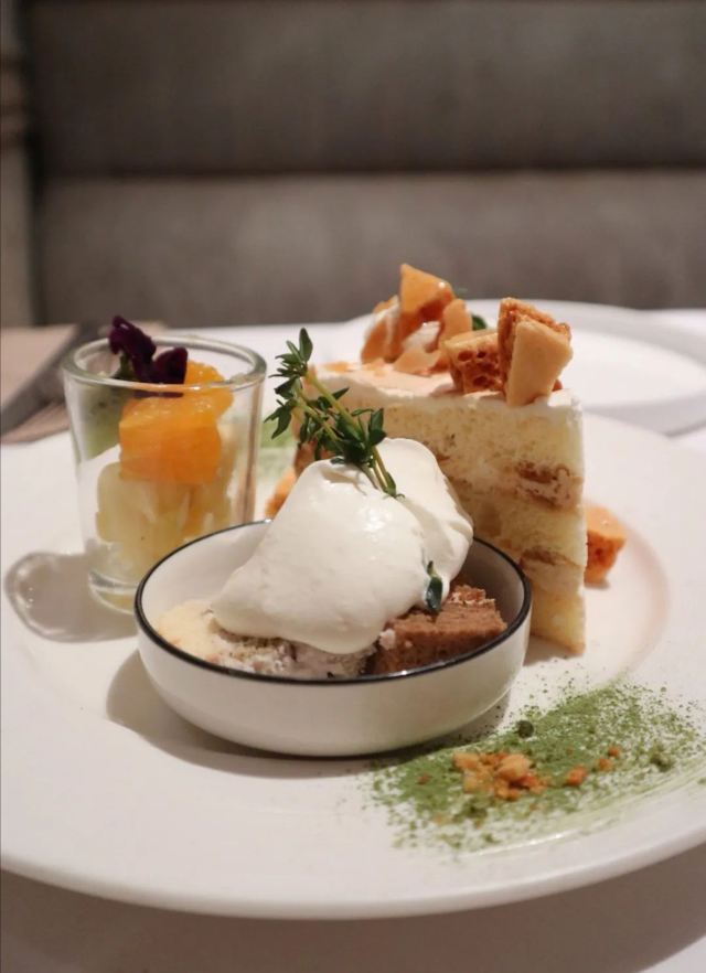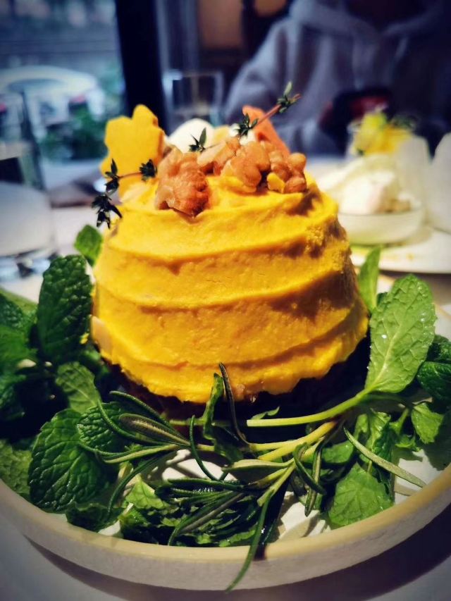 林默冉给盆友庆祝生日,顺便过来劈个情操(⁎⁍̴̛ᴗ⁍̴̛⁎) 「餐前面包」搭配了面包酱哦,量还不少,味道嘛,个人比较喜欢核桃面包,柔软,蘸个面包酱好吃。 「焦糖舒芙蕾」看评论说要提前预订的,于是订位的时候就一起订了,但是个人觉得更喜欢鲜の芙蕾的口感,这个吃起来有点腻。 「黑松露鸡枞菇奶油宽面」面真的很宽啊,不过味道蛮不错的,酱汁也好吃。 「香煎露杰鸭肝黑松露炖饭」想吃的海鲜炖饭没了,套餐里只能选择这个炖饭了,鸭肝有点腻,但是炖饭味道真的不错,夏朵的炖饭都很好吃啊。 「花园套餐沙拉」套餐里的沙拉就很普通了。 「野蕈菇奶油浓汤」奶油味不够浓…… 「花园当日甜品」因为炖饭没有吃到想要的,于是夏朵送了我一份甜点(⁎⁍̴̛ᴗ⁍̴̛⁎)服务!