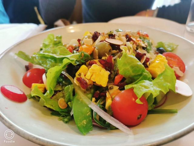 Chartres Garden疫情之前常常来夏朵花园,陪妈妈也来过,闺蜜聚餐,同事小聚也都喜欢来这里,餐前温热的核桃软面包和茴香面包棍,无论主食再丰盛都想再来一份🍞😜 味道浓郁暖暖的蘑菇汤,特别适合降温了阴雨绵绵的今天;龙虾意面,汁浓虾肉Q弹,不经意间用面包擦干净了盘子😜…… 一片树叶拉花的拿铁配上舒芙蕾,浓浓的奶香,加上柠檬冰沙,酸甜绵密的口感,满满的都是幸福感☕️ 闺蜜间的欢颜笑语,往后都会是美好的回忆💃 【口味】不会特别惊艳,但是就是喜欢 【环境】温馨 【服务】周到亲切