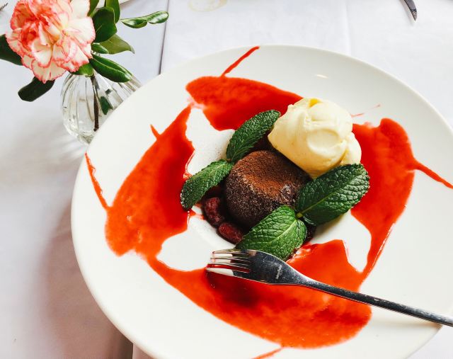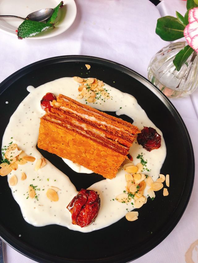 未接来电2019夏朵花园西餐厅位于复兴西路丁香花园附近。这一片属于徐汇老上海地界儿,坐在室外吃个午餐,悠哉游哉。而且到处都能闻到百合的香味~ 建筑装修属于法式风格,菜式也是法风。服务也属于法式的,服务人员很少。。换餐具倒是很勤。 餐前包相当柔软,算是特别特好吃的餐前面包了,棍儿似的饼干是茴香味儿的。 鹅肝黑松露炖饭的鹅肝不腥,饭是利索托标准的略夹生口感,软糯,咸鲜。 蘑菇汤里面有着轻盈的泡沫,味道特别浓郁,喝完我老公表示要在家里尝试。 另外还有个千层面,找主食的时候看到它毫不犹豫就点了!因为自己也做过,深知红白酱做起来很烦。外表被考得酥酥脆,酱汁也很细腻,味道咸淡合适。 「熔岩巧克力」颜值也太高了吧,层次超级丰富,熔岩巧克力是烫烫的、甜甜的。抹茶冰淇淋是冰冰的、苦苦的。多种味觉的融合很美!!! 这个位置,这个环境,人均二百元的价格不算高。