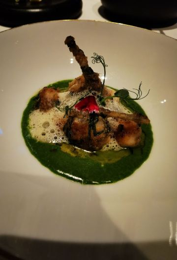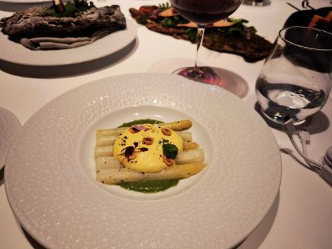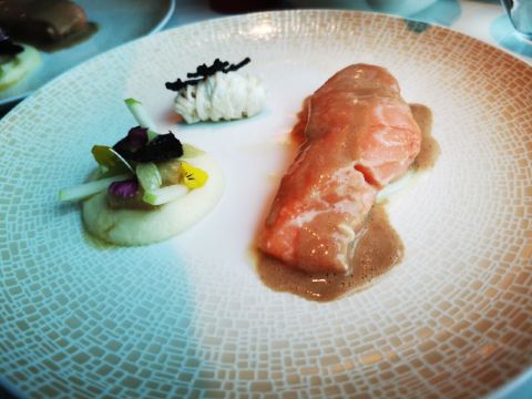 MissSpecial多年前就曾在浦东香格里拉大酒店的翡翠36餐厅感受过法餐,还记得主厨把鱼子酱和甜品都结合了起来,大胆而富有创意,美味无比。还有那3D动画影像在餐桌上的精彩呈现,更是让人惊艳。如今,翡翠36又有了新的法式美味演绎。来自法国卡斯特尔的新晋行政总厨奥利维尔•皮斯特创作了新菜单。那种法式优雅,就像翡翠一样温润高贵,让人吃出宫廷感。 36层,高高在云端的感觉,向外望去就是美丽的黄浦江与外滩,是上海东西方文化最经典结合的风景。云端享受美食,更是别有一番风情。 入座时就被这玻璃碗里的菜单吸引了,像是从一个水晶的御花园中打开美味的感觉。腌制的马鲛鱼在覆盆子果酱、芥末冰淇凌、茴香和烤坚果的搭配下,依次跳跃着不同的口感。搭配上2016年的碧玉兹酒庄的美酒开起了翡翠盛宴的序曲。 香煎鹅肝自然是法餐中最经典的美味,鲜香滑嫩而柔和的口感在口中流动,充满了回味。黑松露汁烘托起鹅肝的鲜香,让人感到回味无穷。北海道的扇贝质感鲜嫩,柠檬蛋黄酱有香绵的口感又不腻口,与扇贝的搭配相得益彰。 之后一道融入了白兰地的苹果沙冰清口,再品尝有质感的香煎小牛肉。菌菇的搭配让这道美味有了森林的自然风情。波尔多红葡萄酒的香醇最是能烘托出整道菜的层次感。 耳边飘扬优雅的音乐,窗外是黄浦江两岸的盛景,而餐桌上是令人悦目悦心更打动味蕾的美味。翡翠的盛宴,曼妙的夜。