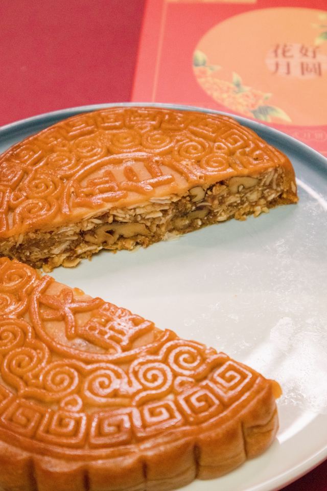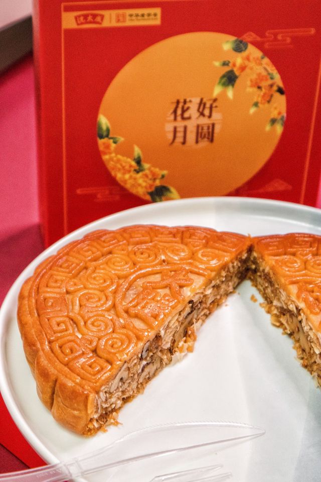 Shen DaCheng (Yue Hui Plaza)惊!老字号出了款比脸还大的火腿五仁月饼! zui近月饼届又有新闻啦!阿拉上海宁耳熟能详的老字号实惠品牌沈大成,除了鲜肉月饼好切,还出了一款比脸还大大大的火腿五仁月饼,感觉都和月亮一样大了~与中秋的满月相映成趣,好应景哦! 佳节与家人一起分享大月饼,切开的过程有点像切蛋糕了呢~月饼🥮边上有花边纹路。完全可以按照纹路来均分,不能“厚此薄彼”~ 月饼真的超大,16cm×16cm的特大尺寸~火腿香气伴着饱满五仁,还特别添加了醇香的白酒,吃起来好上头哦!相比于小时候吃的五仁月饼,口感层次更加醇厚与丰富了,口味真不错耶!礼盒也很漂亮,传统的红色打底,圆月当空,祥云漂浮,娇花摇曳暗香浮动,好一副美的意象!寓意也是很棒,礼盒自用送人都很🉑国风也很大气体面上档次 #沈大成#中秋节#中秋月饼#中秋礼盒#月饼#五仁月饼#鲜肉月饼