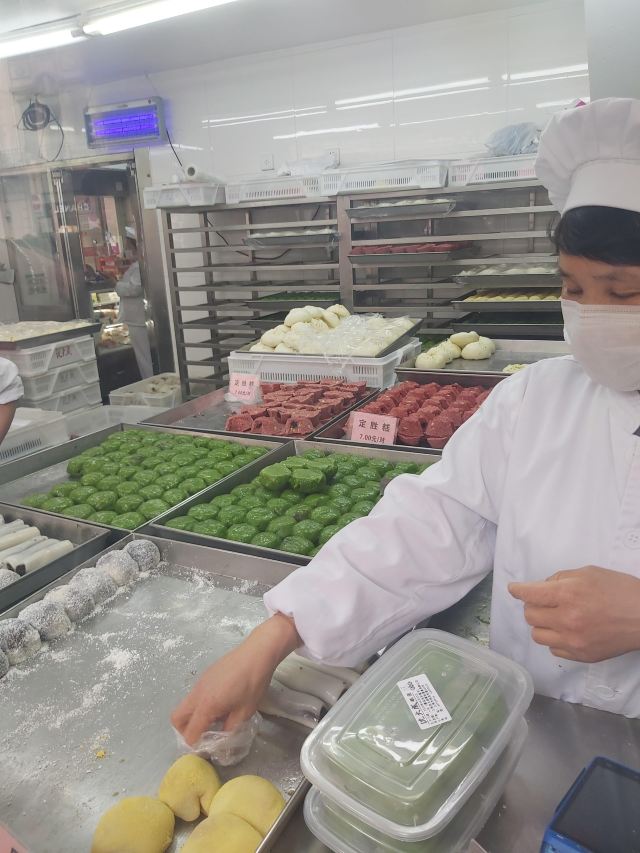 ro****rs沈大成,上海点心老字号,每次路过南京路总归都在排队的,相比较节假日平时队伍还好,但是客源不断,也是老字号的吸引力了。 妈妈喜欢吃路过就排队买双酿团吃吃,最喜欢的就是双酿团和条头糕了,双酿团是芝麻豆沙馅儿的,条头糕是豆沙馅儿的,每次必买,都很好吃的哦。金团是黄豆粉的看着好看点吃着一般般,比较偏爱豆沙口味的。 沈大成的糕团口味都挺不错的,青团现在也是有的,看到有人一盒一盒的买,生意很好,有豆沙菜肉蛋黄口味的青团,都蛮喜欢的,平时吃吃蛮好的等到清明冬至都要排队的。 阿姨收钱都很麻利的,也可以扫支付宝现在都很便利了看到各种点心实物想买的就很多了,这个拿点那个拿点,糯米的东西容易管饱,但是最好新鲜的就吃,隔夜就不好了。
