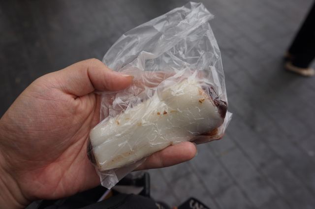 三接桥1、4月23日中午去国际饭店买蝴蝶酥,出来后顺便逛逛到了沈大成。 2、老上海人都知道,沈大成的特色就是糯米糕团,尤其是时令季节的青团、重阳糕。但凡清明节,重阳节路过沈大成门口没有见到不排队的。一旦看见排队的你也就知道在卖什么了。 3、这次路过沈大成看见沈大成的橱窗留出了很大一部分在卖香菇菜包、鲜肉大包,我就觉得沈大成在抢生意了,换一种思路就是南京路上吃包子的外地人越来越多了。 4、当天下午我顺便买了两只双酿团(90克,4.50元/只)、两根条头糕(70克,3.50元/根)。价钱不算贵,因为沈大成的食材是货真价实的。本来想带回家吃的,我没有边走边吃的习惯,但是,抵御不住诱惑,外卖窗口买好后立马就转弯进入了店堂坐下来就吃了起来。 5、说句真心话,沈大成的糯米糕真心好吃,非但糯米细洁、香而糯,关键其馅料做得真心到位,特别是双酿团中的豆沙之细,黑洋沙馅(黑芝麻馅)之香以及甜度之适中,一口下去,两种味道同时输送到了你的味蕾,其它店家确实不多见。