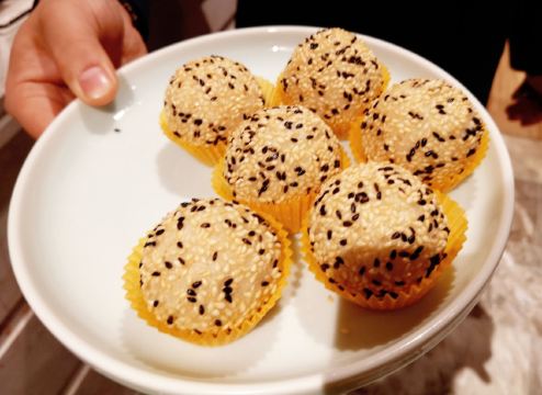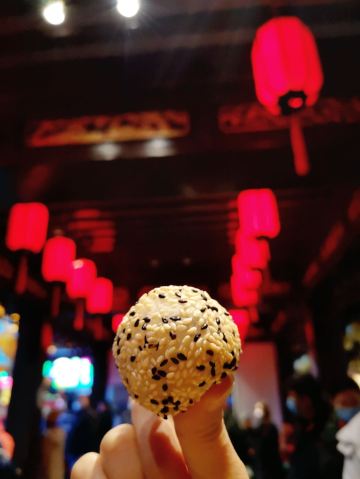 蓓家温暖城隍庙老字号的百年老店南翔馒头店名字响当当,几乎来城隍庙白相的游客都要进来尝一尝店内招牌小笼包,皮薄、馅足、汁多、味鲜,哪怕排了长队也不改初心。其实买这张秒杀的手工麻球的券我是有私心的,想来看灯会时在楼上拍几张花灯照片顺带拿麻球领了。 环境:位于九曲桥旁边的中心位置南翔馒头店怎么逛都不会找不到,一年365天,总有一列长队在门口等着。装修后的2楼3楼用餐环境更加舒适,靠窗的景观位非常抢手。 服务:门口有领位员专门引导顾客有序排队,及时跟楼上沟通让散客分批进入,二楼也有领班带顾客入座,看到顾客礼貌招呼,有需求会及时处理。 |手工麻球^这个手工麻球真心不大,一份3只黑芝麻馅的,我感觉就是宁波黑芝麻汤圆外裹了一层黑白芝麻,趁热吃口感不错,外层芝麻香,里面糯米糯,里面黑芝麻馅缓缓流出,香甜。 跟服务生说打包团购的麻球才让我不用排队优先上2楼的,果然餐厅里坐满了食客,也不好意思去占个座位到窗边拍花灯照了,乖乖在餐厅门口等阿姨把已经放进食品袋的麻球给我就下楼了。