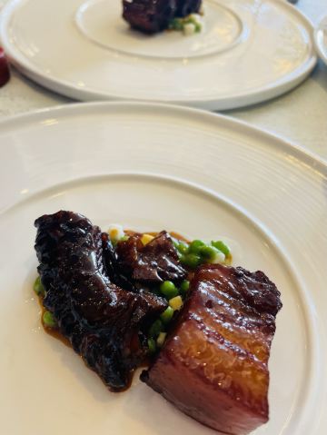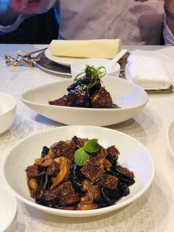 YoYo_2M3S3C6R家人过六十大寿,选择了经典奢华和怀旧迷人的上海和平饭店龙凤厅。 提前预订了靠窗风景位,窗外是外滩一线江景,对面就是东方明珠,真可谓——风景这边独好! 老上海和平饭店,的确有老上海的感觉。菜品很精致,店里主打的片皮鸭要提前预定,一鸭三吃,与众不同。 黑金雪花牛肉粒,牛肉品质非常高,肉汁紧致有弹性,强烈推荐。 杨枝甘露 浓郁,强烈推荐。 饭店还特地为寿星准备了生日蛋糕,服务员一起唱起了生日歌,特别的温馨。 龙凤厅作为上海饭店的一张名片,不仅仅是菜品,而且服务员的态度也是上乘。 这里特别要表扬的是Monica,、Lulu两位,服务主动、热情,细节上做的很周到,体现了高档餐厅的高档服务。 她们的服务与环境、菜品,不仅相得益彰更可谓是锦上添花,为Monica,、Lulu点赞[强][强][强]!!!