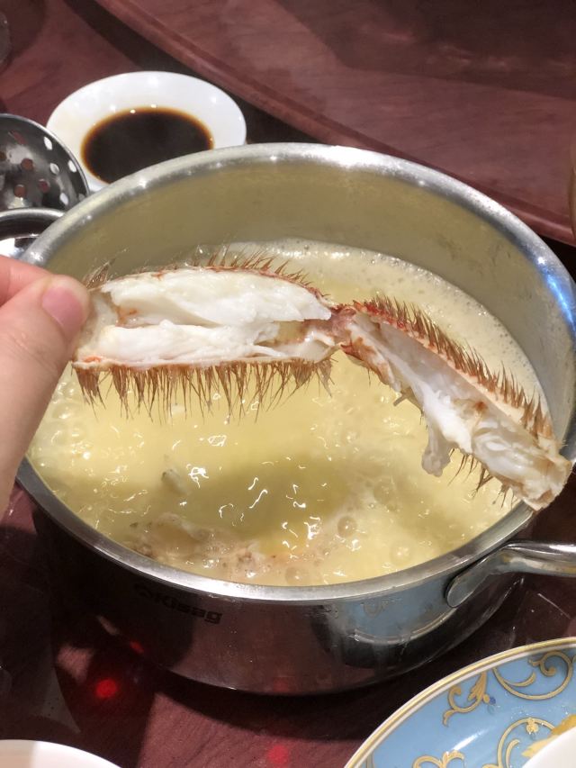 蛋花食游记洋房里的精致火锅 是西郊壹号的忠实粉丝,之前来吃过一次百日宴家里人都对这里厨师的水准赞不绝口。他家的南苑系列我也很喜欢之前的铁板烧就被惊艳到食材各方面都很赞。如今又新开火锅,一定要来拔草。 他家的格局都是包房系列,富丽堂皇,墙壁的上的装饰也是手工贴上去的,精巧绝伦。管家式的服务,人多团购了一个688套餐,还单点了几个海鲜,响螺花胶翅汤底,浓稠幼滑,不含任何添加剂,小火里鱼翅花胶的量还不少。汤底喝爽了,加汤涮海鲜,硕大新鲜的红毛蟹。分量十足,丝丝入扣,新鲜不已,连蟹的最细的钳子里都有肉,套餐里雪花和牛双拼,品质真的好,粉嫩的色泽,漂亮的纹理,烫过以后,还能清晰可见脂肪,一口下去奶香味扑鼻,非常地满足,甜品开心果翡翠湖,听说找的星级大厨做的,米其林级别的出品,非常地好吃,还吃出了糯滑的小圆子,惊喜~