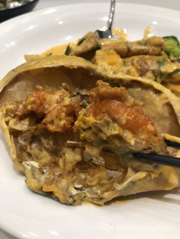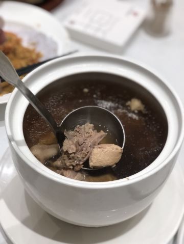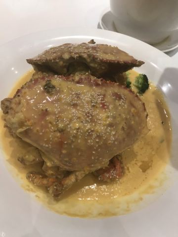 蛋花食游记一家店可以开20年,足以说明味道极佳,性价比还不错! 虾汤沸腾饭:汤头是用虾汤精心熬制而成,鲜美而浓郁(好似熬制数小时而成的精华),只需一口就已是满满的“海味道”;最惊喜的是饭,是颗颗饱满的长粒香,锅内爆香后将稻香更加凸显。海鲜与稻香的融合,实在是好吃,极力推荐!!! 招牌蛋黄蟹:极力推荐的一道菜。蟹采用蟹黄饱满的面包蟹(用心),酱汁调配的色泽鲜亮(视觉上享受),入口时蛋黄香、椰香交融在比例恰到好,口感极佳。(很多店酱汁处理不好,但这家店却相当赞) 台州自制手掰豆腐:实话实说,吃这个菜的时,我感动了一下。豆腐有种很多年前才能吃到那种味道与口感(传统老味道)。汤头鲜、香、干爽。最主要是不口干,有回香。逐渐入冬,来一碗很是温馨。 五指毛桃炖老鸡:极力推荐!!!首先山泉水,熬煮6小时以上。入口清爽、淡淡椰香,更主要是不咸、不腻、不口干,更带有回甘。滋补、养身极佳的一款汤,即将入冬,大力推荐!鸡多一分嫌老,少一分没有鸡肉的口感!只为这个汤,再来几个也值得! 港式榴莲酥:本以为点心无惊喜,我却大错特错。一流面点师,纯手工现场烘焙,皮的酥脆与馅的软糯在口中交融,伴随着不甜却很香的榴莲味,口感极佳,不输任何一家专业烘培店。