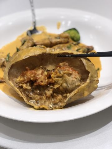 澳洲小鲍鱼,新东江盐焗鸡,竹蛏王,老虎斑清蒸,家烧东海大黄鱼,老上海熏鱼,蜜汁黑叉烧,头牌黑胡椒螃蟹,龙虾汤沸腾泡饭,招牌蛋黄蟹,海瓜子,风味蒜香骨,椒盐富贵虾,椒盐九肚鱼,帝王蟹,泡饭,面包蟹,黑蒜烤生蚝,醋海蜇,猫山王榴莲蟹,虾汤沸腾饭,小扇贝,菠萝油条,海鲜小凉拌,濑尿虾,三文鱼,黑胡椒面包蟹,清蒸海参斑