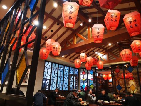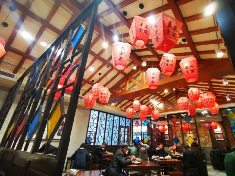 LC大人麻麻大壶春位于四川中路136号,是外滩快餐小吃第一热门。 创始于1932年的大壶春生煎是上海名小吃。三开间的店面,一间是外卖窗口,招牌蟹壳黄,蛋黄肉松月饼,青团,糯米烧麦等在此售卖。另一间是透明厨房,有七八个点心师围着大案板熟练的包生煎。工作日的中午到店,生意兴隆,好在后厨实力保证,点单即可取食,自行找座。传统风格的环境,一个个红灯笼上写着店里的各种美点。服务员很及时的将桌面收拾干净。 【蟹肉生煎】一口咬去是发面制作,是我的菜。而且发面韧性好不粘牙,肉馅很大,蟹味鲜香,吃得到一丝蟹肉或蟹黄,真材实料赞一个。 【大虾生煎】肉馅弹牙,一整个大虾仁,非常过瘾。 【咖喱牛肉粉丝汤】浓浓的咖喱牛肉香,香菜点缀,牛肉不少,粉丝是细细的龙口粉丝。个人更喜欢粗圆的红薯粉丝,爽滑弹牙。 大壶春的生煎很不错,担得起那块老字号招牌。