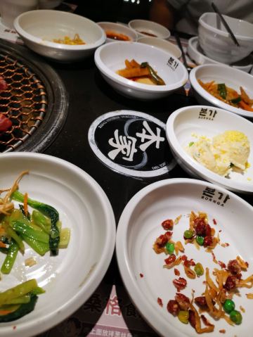 ╮╮╮ Ⅶ☽ 卍 ╭╭╭ 韩国烤肉晚餐 多云小雨 16-23度 女友心心念念的“本家”吴中路店,万象城店的客群偏年青人,小桌的多;吴中路店,韩国人多,大桌的多,但门口停车位有限,记得停车发票可以报销! ️满桌的配菜,免费加,配菜都可以吃饱了,可以只点份肉,吃到打烊吗?[呲牙] 调味的五花肉,烤时滋滋滋的声音,听着舒服,看着留口水,大家一起好久没聚餐,开心 ㊗️店家和气生财、生意兴隆