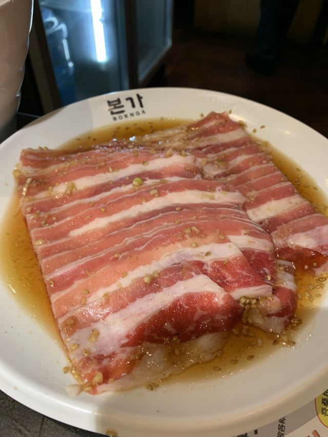 第一次来吴中路上的这家叫本家的韩国料理店吃饭,下午5点过来,人还不多,再晚些时间人就坐满了。 店里面积很大,环境非常好。店里的五花肉、牛肉都蛮不错的,肉质嫩,而且蛮新鲜的。