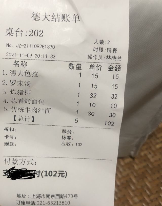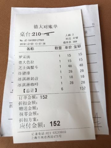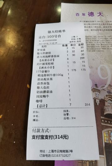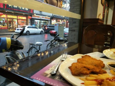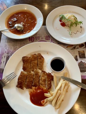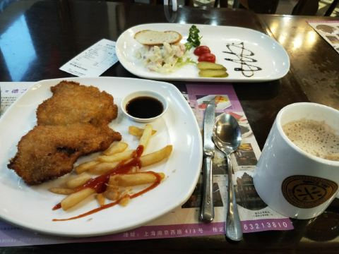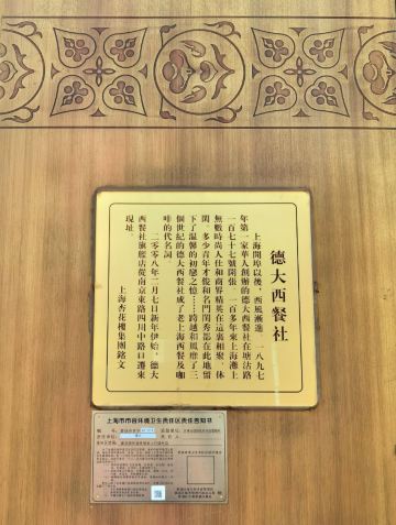 八百彪兵向北走德大西菜社是上海最早的西餐厅。德大是上海老克勒最喜欢的地方,没有之一,只有唯一!位于南京西路上的德大西菜社是清晨里最忙碌的地方。 建于1897年的德大西菜社在上海南京路上驻扎了百余年,旋转门虽说以变的厚重,虽然已和门外繁华的街道形成了对比,但是这又有什么关系?不变的只有上海西餐的情怀! 德大装修还是以前早式的装修风格,但是还是给人一种温馨高贵优雅的感觉。 德大的炸猪排和沙拉非常的好吃!猪排裹上了面包糠,炸成琥珀色,外酥里嫩,好吃极了!尤其是配炸猪排的酱汁,非常好吃。土豆沙拉口感非常不错,土豆绵密但是不散,入口即融,配上烤的酥脆的面包,那感觉简直了! 之后,点一杯热可可☕☕☕,看着街道上繁忙的人群,更能深刻的感受到德大的过人之处了! 德大的蝴蝶酥也是值得推荐的,有大包`小包之分,小包的保质期长,很适合当伴手礼! 我是错开饭峰的时候去的,很安静,不需要预约。