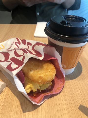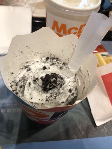 ☘️路过打浦桥,肚子有点饿,随便吃吃。 ☘️自助点餐,扫码付款后耐心等待餐点。人手充足但备餐较慢,取餐处堆积了好多backlog。 ☘️点了「麦香鸡汉堡」,「辣翅」,「那么大鸡排」,「椰子水饮」,一共36.5元。感觉自己胃口好大[偷笑][偷笑] ☘️常规的餐品不说了,单独点评下新品「椰子水饮」,椰香➕奶香,出乎意料的清新口感。 ☘️坐在我对面的是一位中年大叔,点了一份薯条🍟、汉堡🍔、椰子新品。他用食指和拇指轻轻捏住一根薯条,蘸了蘸番茄酱,缓缓送进嘴里,眯缝着的眼睛与不羁的兰花指把快餐吃出了大餐的感觉。 ☘️此情此景,说来惭愧,扪心自问,自己有多久没有好好享受美食了,仅仅只是为了填饱肚子而风风火火入店用餐,又或者心不在焉边吃边玩手机,导致注意力都在手机上。今天开始就决定要专心享受美食,和我一样的朋友们,共勉之。