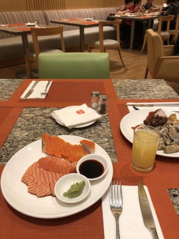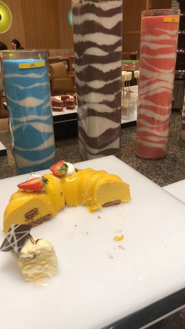 陪朋友去的,周末居然人也不多,感觉现在吃自助餐的都是老年人的天下,有几桌都是年纪大的。菜的品种不是很多,大概这就是星级酒店的标准吧。不过刺身里面有三文鱼就够了,我喜欢。酒店一般西点都做得不错,都蛮好吃的。
