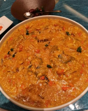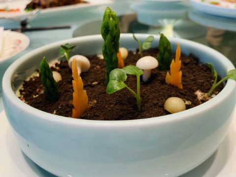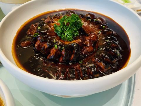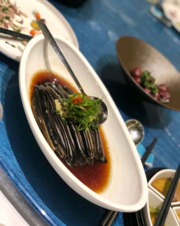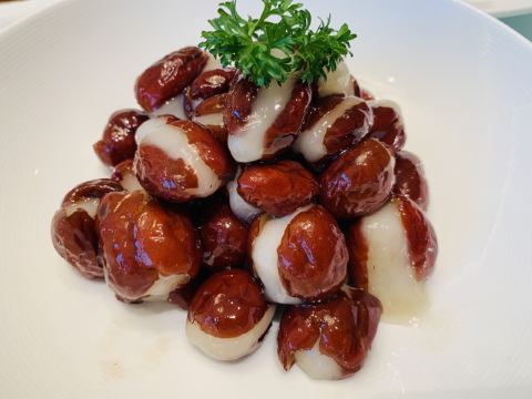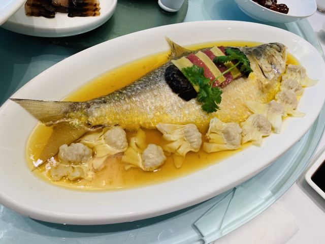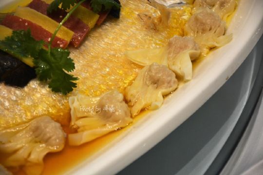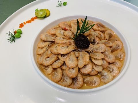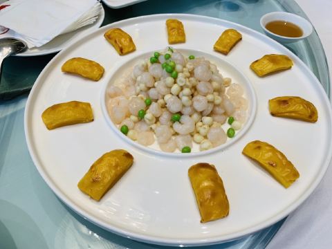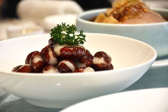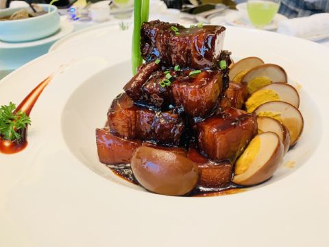 每一次的拔草圆苑都能带来不一样的体验,还有那些经久不衰的经典菜品~ 冷菜 糯米红枣,属于冷菜里的热菜,又名心太软,正是任贤齐一首《心太软》时的同期经典品,软糯的糯米团外面包裹着一整颗的无核红枣,趁热吃~ 冰沙红酒鹅肝,装置在有特色的玻璃器皿中,揭盖露出一块块如明治巧克力般的鹅肝,入口是不会很腻歪的口感,平时吃一口就腻的我,可以来2⃣️块[调皮] 话梅白米虾,是将普通不过的白米虾加入了话梅的酸甜味,做的真的很入味,我可是一下吃了好几只~ 春色土豆色拉,是一碗有奥利奥的土豆泥,表层铺满奥利奥饼干碎,上面“种了”芦笋,菌菇等,初识以为是提拉米苏,迫不及待的挖一勺,好特别的奥利奥版土豆提拉米苏[笑脸] 热菜 圆苑红烧肉酱蛋,是经典中的经典,这几年除了盛放的器皿略有不同,不变的还是那个浓油赤酱肥瘦相间的红烧肉味道,酱蛋也要记得吃噢,靠近加热的底部的蛋白会因为加热的时间过久而变硬,所以一定要趁热趁早吃噢[馋] 鸡头米炒河虾仁拼芝士南瓜,超大一个白圆盘盛放,鸡头米与河虾仁就是落入玉盘中的大珠小珠,围一圈的芝士南瓜又像是盛开的一朵花,鸡头米就是芡实,我记得吃潮汕锅时也会加入芡实,芡实有补脾益肾的功效,吃鸡头米河虾仁配点小醋更美味,芝士南瓜是用200克的迷你南瓜,加上橙,芝士,日本清酒制作而成,请一定要趁热吃,否则凉了口感就不那么理想咯~ 花雕蒸鲥鱼,一条蛮长的长江鲥鱼,鱼背上插有火腿片姜片,鱼的一边还围了十来个小馄饨,入口的小馄饨已有了花雕味,鲥鱼肉嫩刺多,吃时要注意哦,更喜欢鱼背上的火腿片,吸取了所有的精华[坏笑](其实鱼鳞也是精华呀,只是我至今还是吃不惯鲥鱼鱼鳞[捂脸]) 蒜枣河鳗,红烧,河鳗盘居圆盘中,周围有蜜枣,蒜瓣相伴,河鳗的肉质真的超嫩,一碰就松,夹一块掉半块,入口即化,除了中间一块三角鱼骨没有多余的鱼刺,适合老人小孩吃,不用担心卡喉 汤 圆苑特色土鸡汤,是熬制一段时间的一整只老母鸡汤,加入了睡莲作为点睛之笔,看着莲花在鸡汤中绽放,有着花开富贵寓意,而鸡汤中也带有睡莲的清香扑鼻~ 主食 圆苑流沙包,圆滚滚的小包子,盖有圆苑LOGO的章,肚子里的流沙咬破皮就滚滚而出~ 甜品 核桃冰糕,方方正正一块,顶上插片小绿芽,周边西瓜蜜瓜小球散落点缀,从今天这一餐开始它有了一段吃一口秒回15岁青葱岁月的梗[耶][鬼脸] 以上~