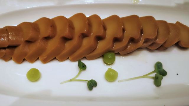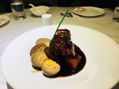 #环境# 私密的包房+典雅的大厅,无论是设宴还是聚餐都是不错的选择~ #冰沙红酒鹅肝# 强烈推荐的一道冷菜,一款做的类似于巧克力口感的独一无二的鹅肝了解一下~ 一份肥美的鹅肝,运用红酒、清酒的酒劲去除了肥腻之感,增添的如草莓之类的水果,让鹅肝拥有了一种特殊的果香~ 5度以下的保存环境,确保了鹅肝入口如巧克力滑开般的口感~ 真的是相当特别,相当匠心的一道菜品~ #圆苑鲫鱼冻# 相当费时费心的一道菜品,出品后滋味也是极佳了~ 鲫鱼为底,去除了大部分的鱼刺后,独留鲫鱼的鲜美~ 搭配一点黄豆,熬煮放凉呈果冻状,更加细心的用鱼款模型进行定型~ 一道料理,用一条鱼呈一条“鱼”~ #上海酱油肉# 酱油肉是一道属于年味的菜肴,而在当下还能品尝则是得益于店家的费心保存~ 肥肉部分晶莹剔透,精肉部分酥而不柴~ 入口咸香滋味充斥于舌尖之上~ #春色土豆色拉# 一道家常经典菜的新摆盘~ 土豆色拉的滋味非常经典,但是店家借鉴分子料理带来的摆盘则有了新鲜之感~ 更加让这道菜呈现了春天的感觉~ 土豆色拉入口绵软,面上的“土”不显突兀~ #糯米红枣# 号称圆苑首创的糯米红枣,冷菜热做的经典菜品~ 甜甜蜜蜜的红枣裹挟着软糯可口的糯米,丰富的层次感搭配的是甜而不腻的滋味~ #圆苑红烧肉酱蛋# 强烈推荐的一道经典菜品,堪称本帮菜红烧肉中的最佳了~ 当之无愧的王牌菜品~ 红烧肉最讲究新鲜,每个时段的红烧肉都是当前新鲜烹饪~ 同时红烧肉的芡汁均为小火熬煮,而非人为勾芡~ 正是这样的要求,让整道红烧肉真正体现出了什么叫做肥而不腻~ #至尊扣三宝# 选取的是六头鹅掌、新鲜鲍鱼与菌菇共同焖烧而成~ 浸润食材的浓汤是由鸡肉、排骨等共同熬煮而成~ 相辅相成引出了各自的鲜美之味,整体上鹅掌酥而不烂,鲍鱼鲜嫩Q弹~ #圆苑宫廷烤鸭# 非常传统工艺的烤鸭,师傅现场片皮~ 可自行搭配糖、酱汁等调味品进行品尝~ 烤鸭皮酥脆,一定的油脂让其入口后有种鲜美溢出的感觉~ #花雕蒸鲥鱼# 鲥鱼作为长江的顶级鲜味,当仁不让~ #蒜枣河鳗# 这道河鳗不同于以往鳗鱼的肥腻~ 筷子夹而不散,但是入口即化~ 浓油赤酱之下又是这道菜品的完美呈现~ #圆苑流沙包# 流沙包之上是圆苑的logo,全部取之于食材的颜色,让流沙包的外皮和内皮呈现了不一样的颜色~ 内馅的黄油和咸蛋黄恰到好处,咸鲜不腻~ 吃的时候一定要当心,相当具有爆浆的风范~